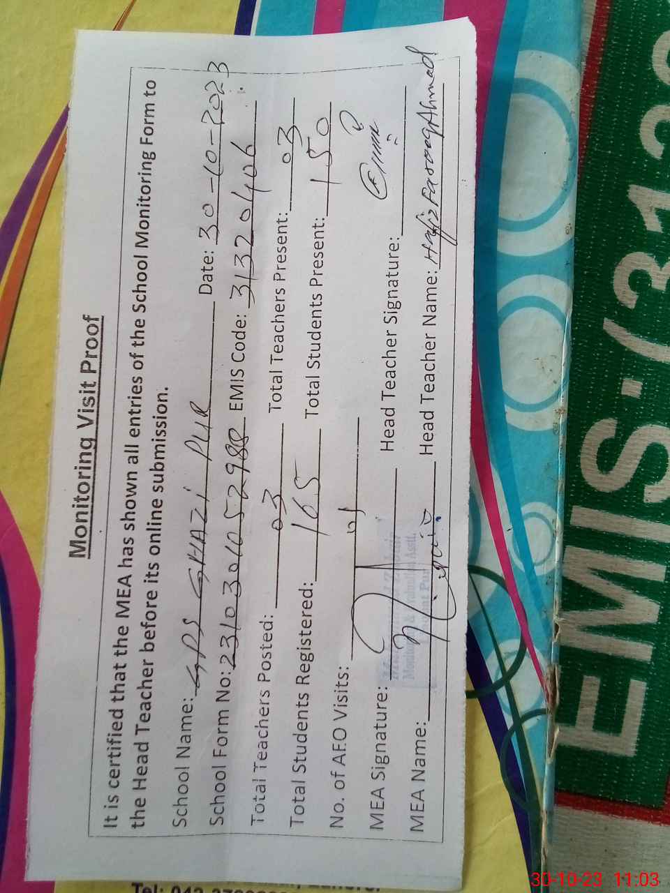 | EMIS Code: 31320406 | Name of School: GPS GHAZI PUR | |||