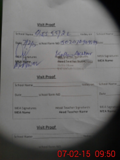 | Attendance Register | Head Teacher | MEA with School | Visit Proof |