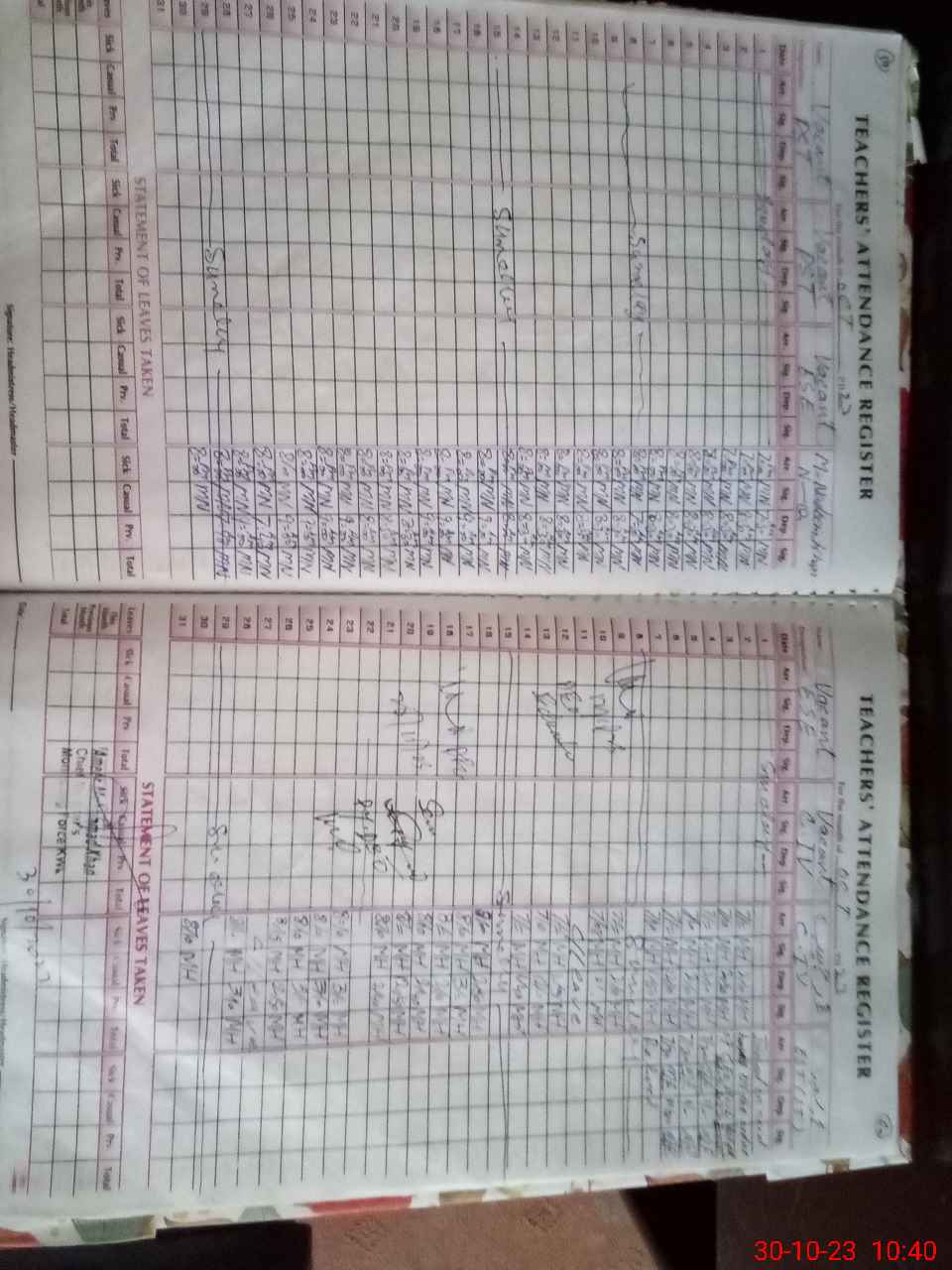 | Leave | Duty | Absent | Maternity | Medical | Ex- Pak |