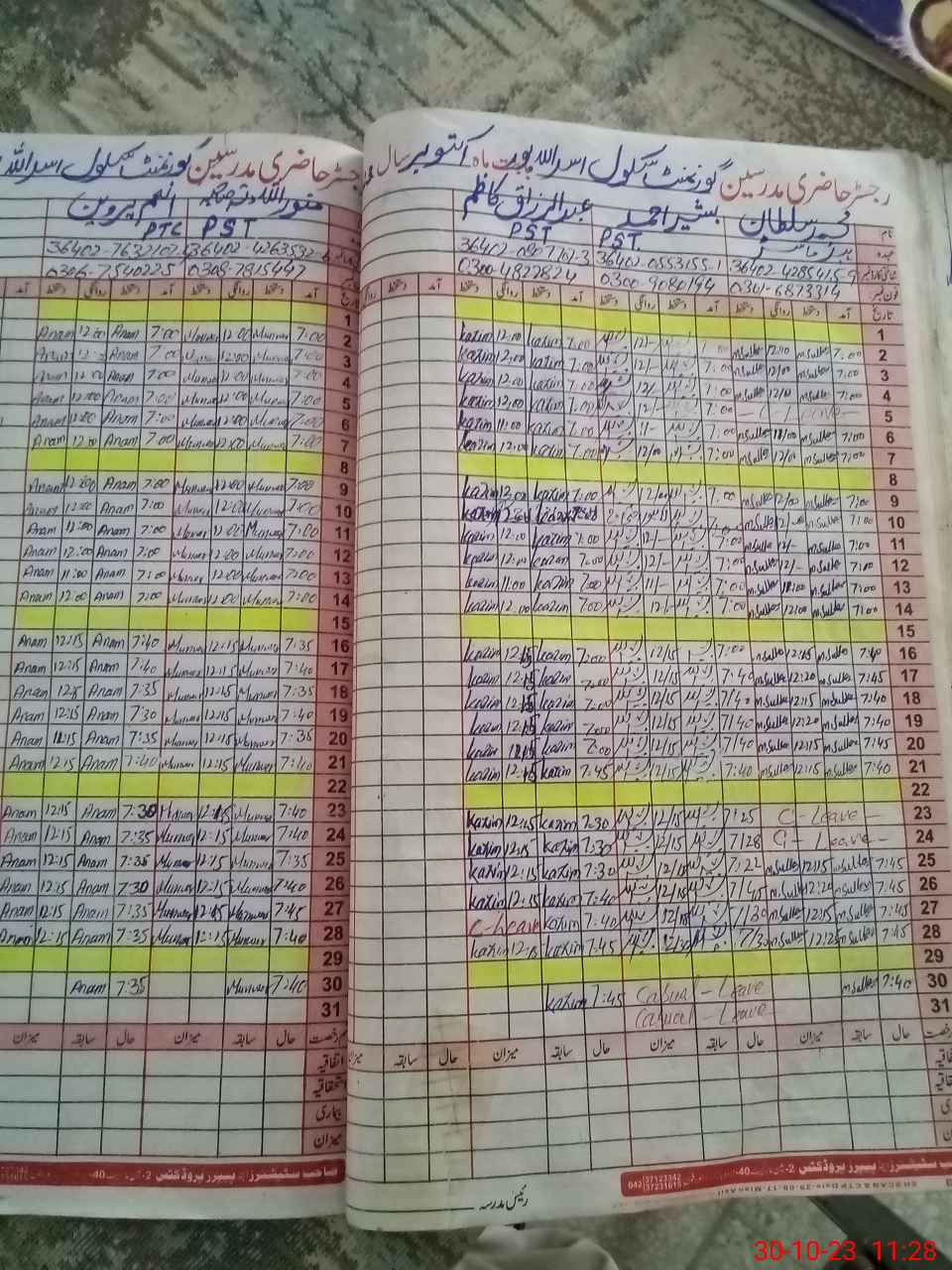 | Name: MU**** SU**** Designation: (School Headmaster's/Headmistress's) PST Phone/Cell Number: 03**** |