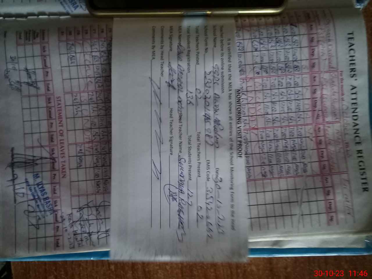 | Attendance Register | Head Teacher | MEA with School | Visit Proof |