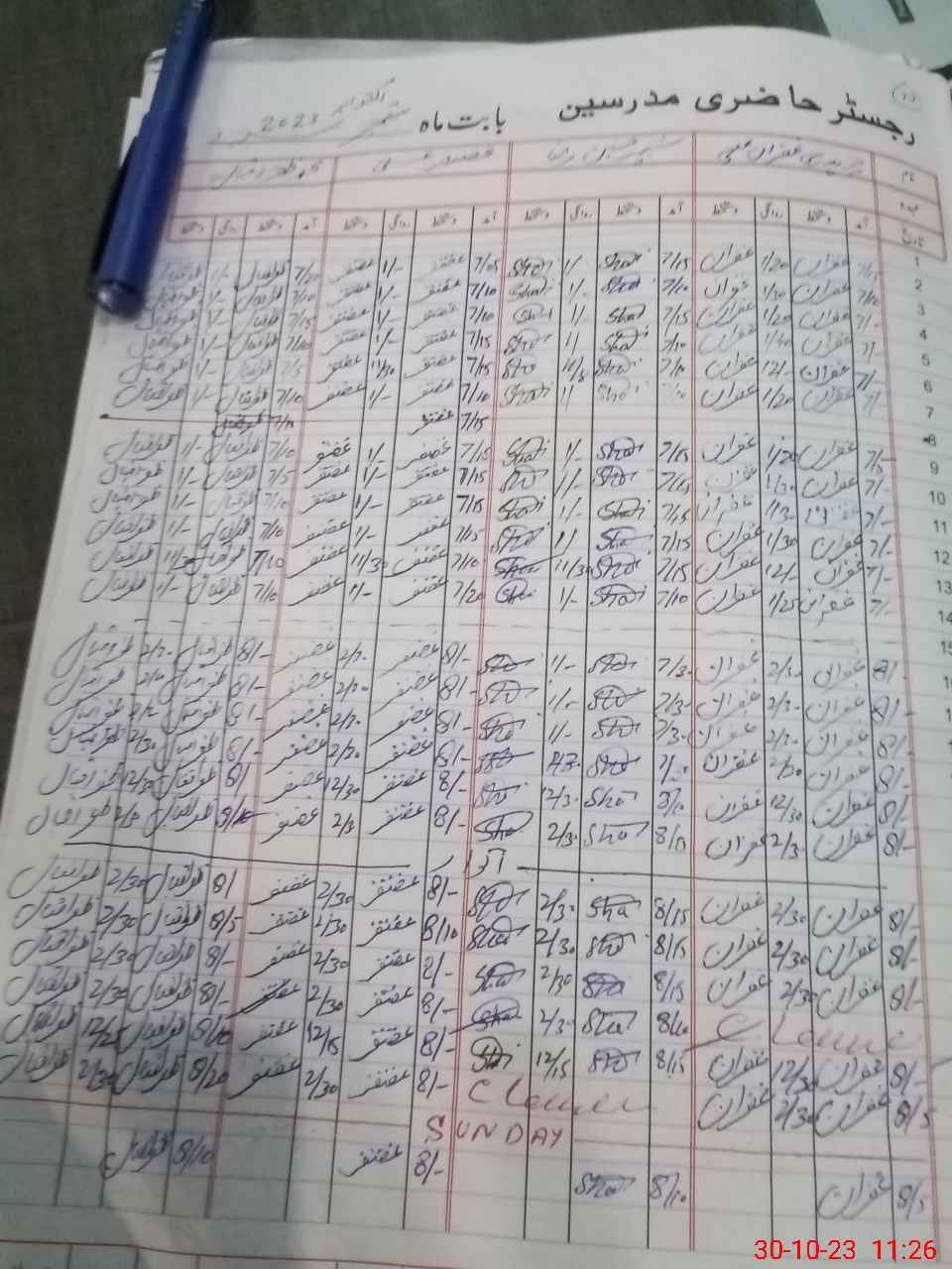 | CNIC | Full Name | Designation | R/C | Absence During Last Calender Month |