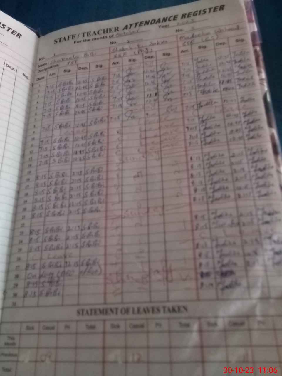| 36**** | As**** Za**** | 1 | 0 | 0 | 30 | 0 | 0 | 0 | 0 | 0 | 0 | Absent (Un-Authorized) | |
