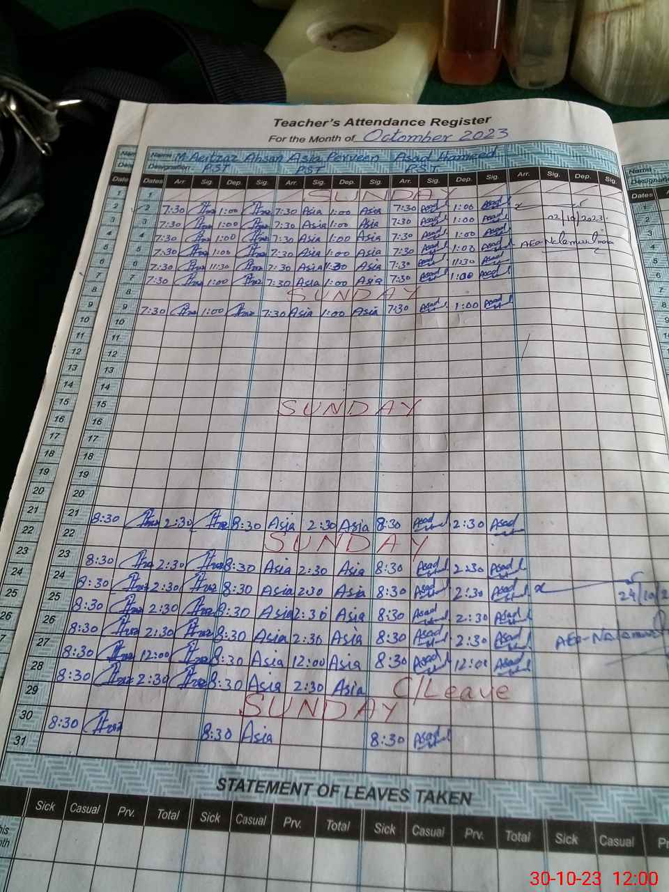 | Leave | Duty | Absent | Maternity | Medical | Ex- Pak |