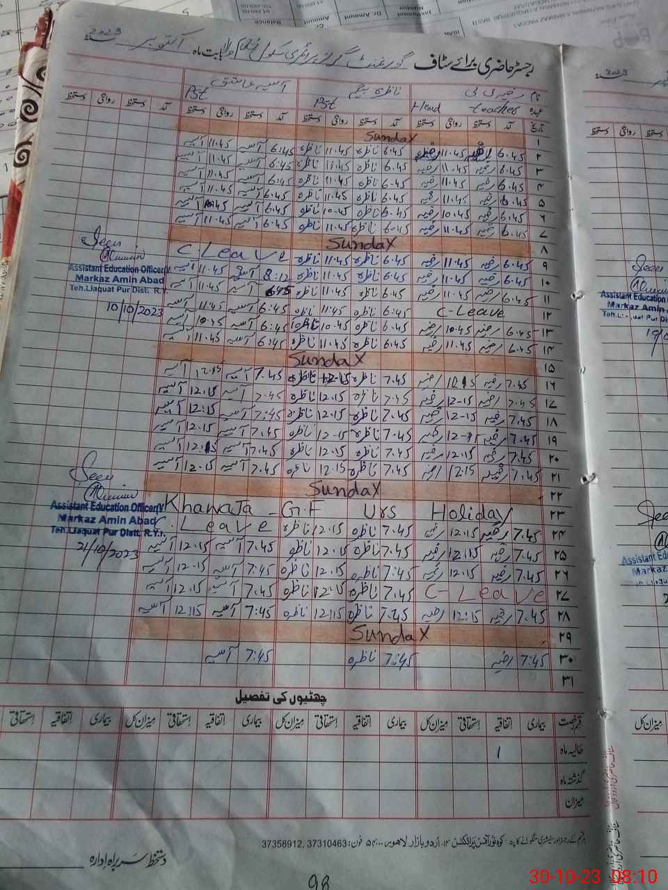 | CNIC | Full Name | Designation | R/C | Absence During Last Calender Month |