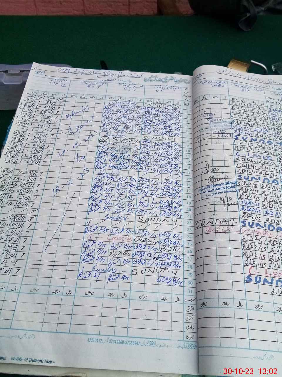 | CNIC | Full Name | Designation | R/C | Absence During Last Calender Month |