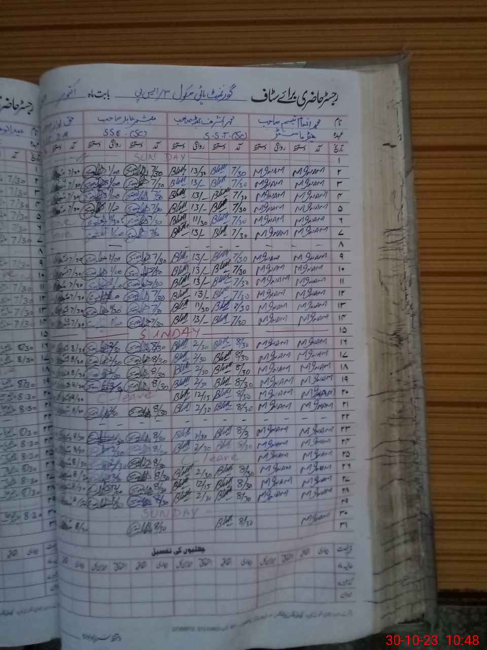 | CNIC | Full Name | Designation | R/C | Absence During Last Calender Month |