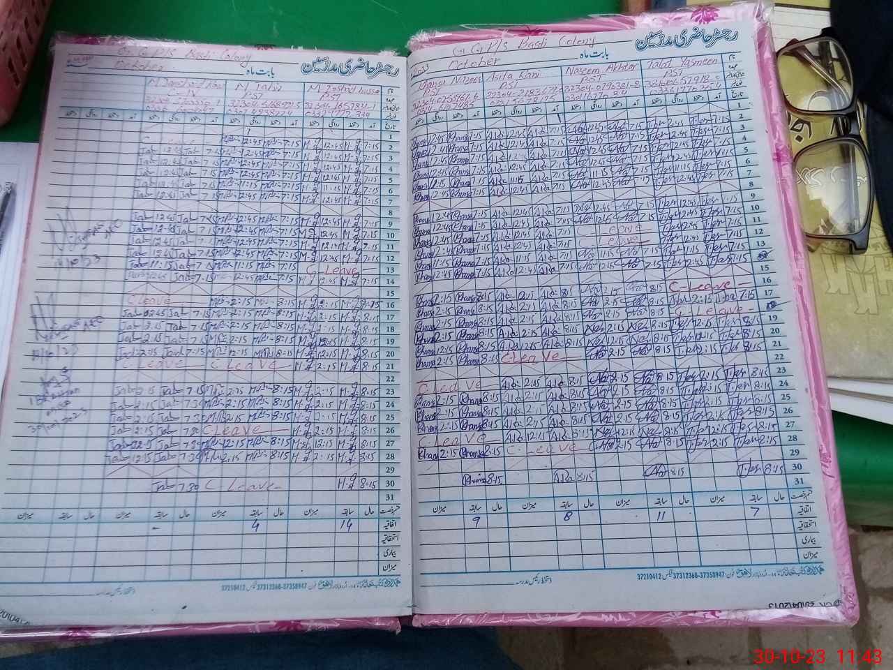 | CNIC | Full Name | Designation | R/C | Absence During Last Calender Month |