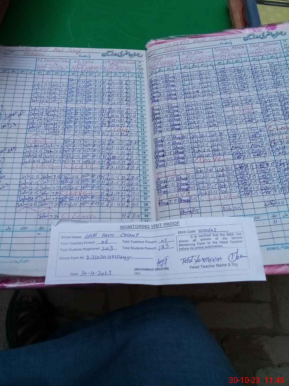 | Attendance Register | Head Teacher | MEA with School | Visit Proof |