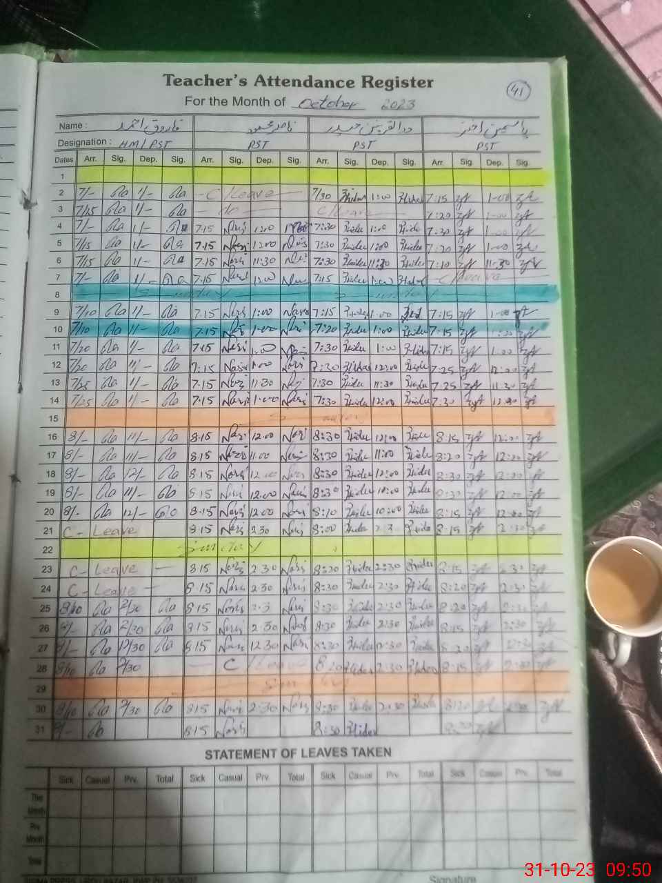 | Leave | Duty | Absent | Maternity | Medical | Ex- Pak |