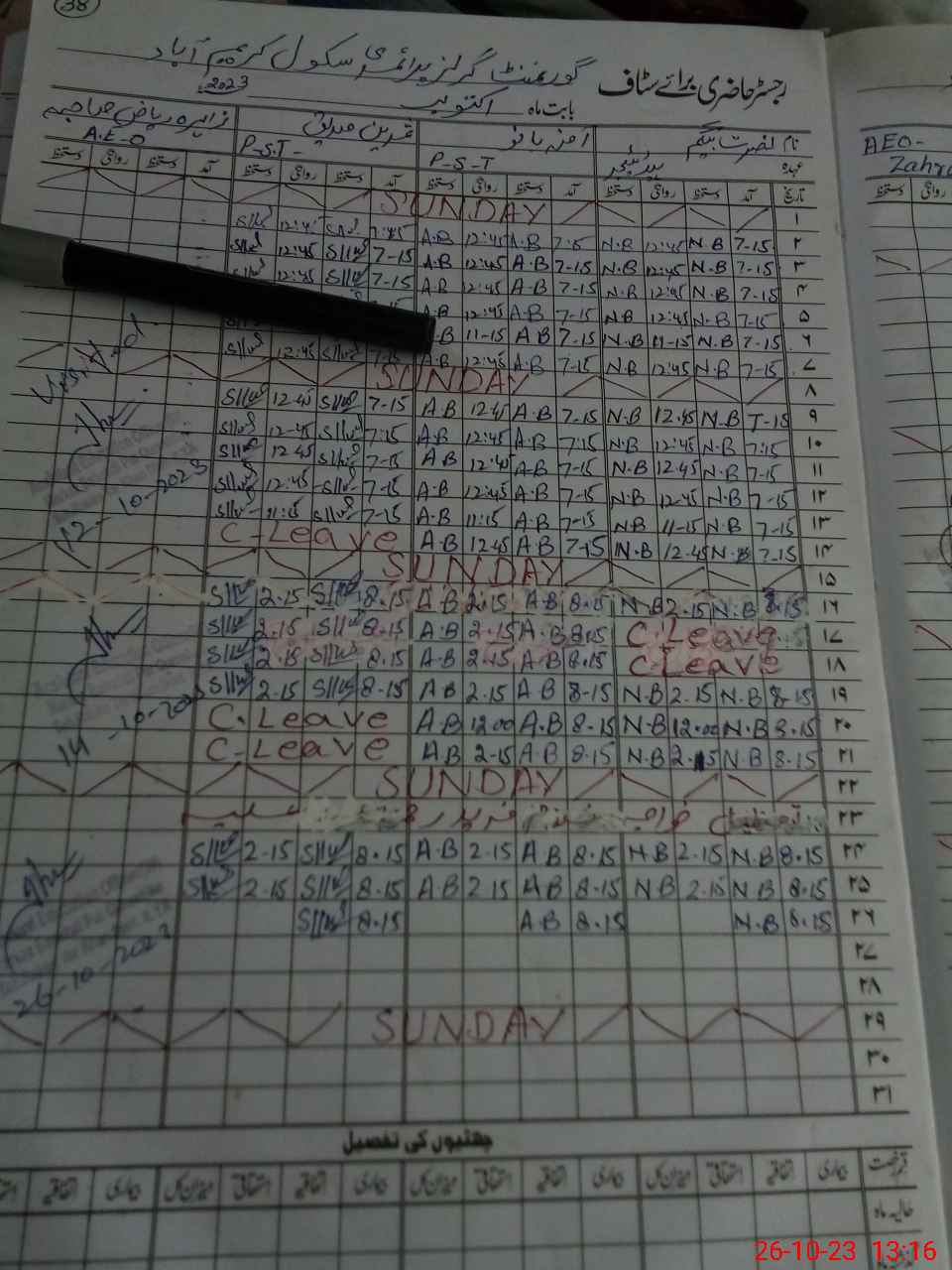 | Leave | Duty | Absent | Maternity | Medical | Ex- Pak |