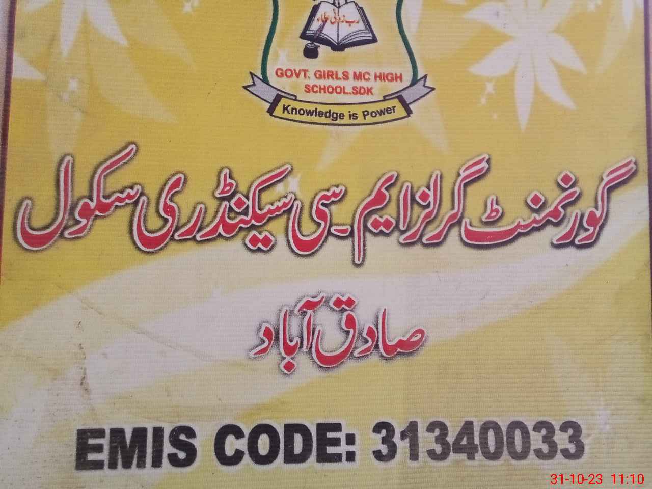 | EMIS Code: 31340033 | Name of School: GGHS MC SADIQ ABAD | |||