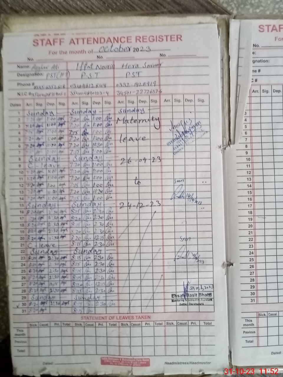 | Name: AS**** AL**** Designation: (School Headmaster's/Headmistress's) PTC Phone/Cell Number: 03**** |
