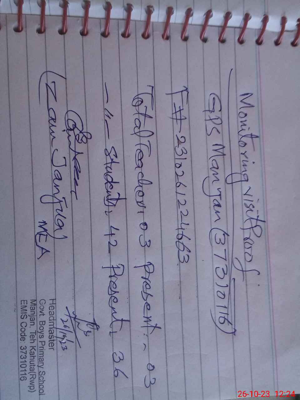 | EMIS Code: 37310116 | Name of School: GPS MANJAN | |||