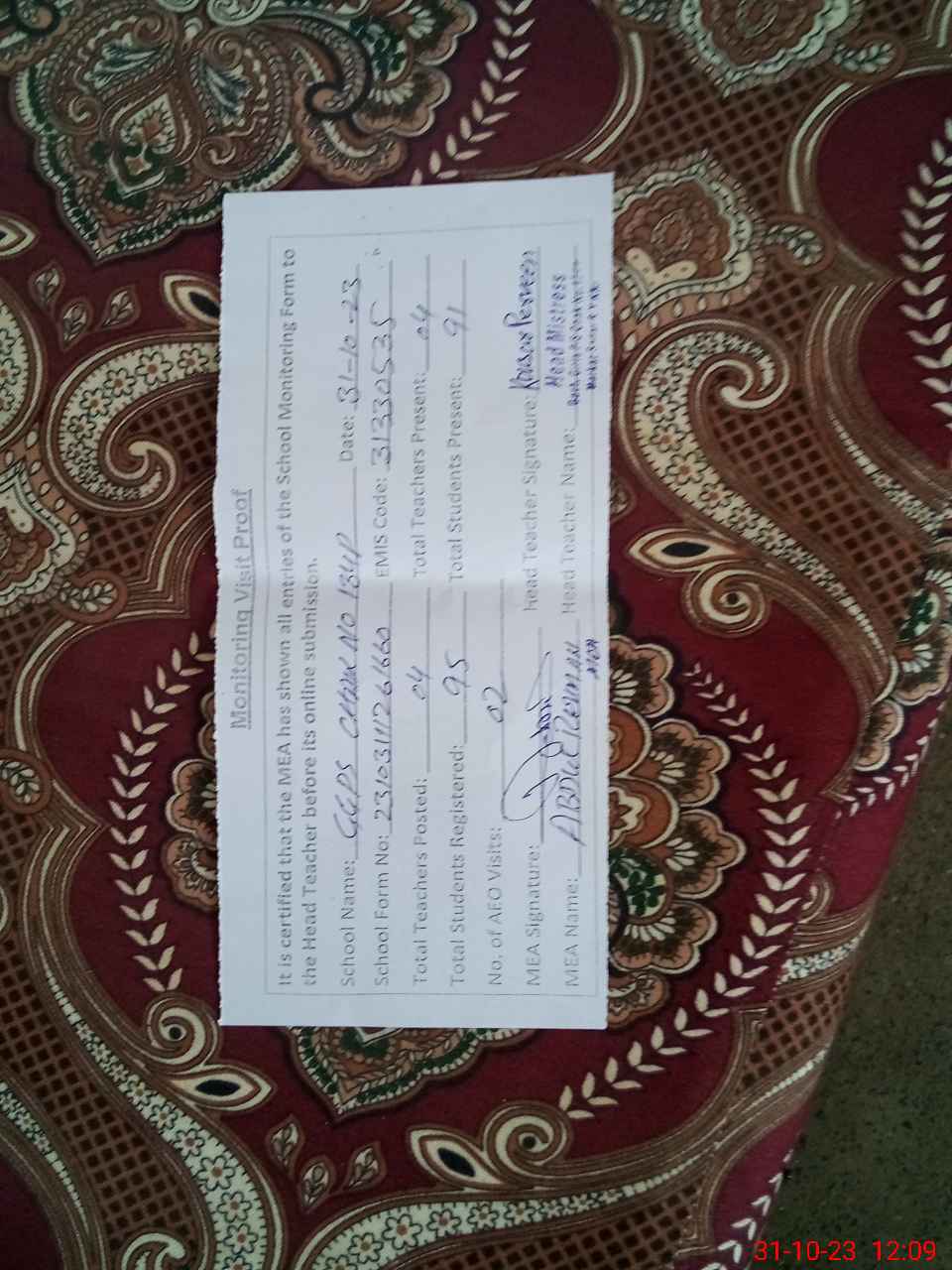 | Certified that this School was Inspected by the Undersigned MEA/DMO Today and the Information Stated Above is as Per Record. | |||||