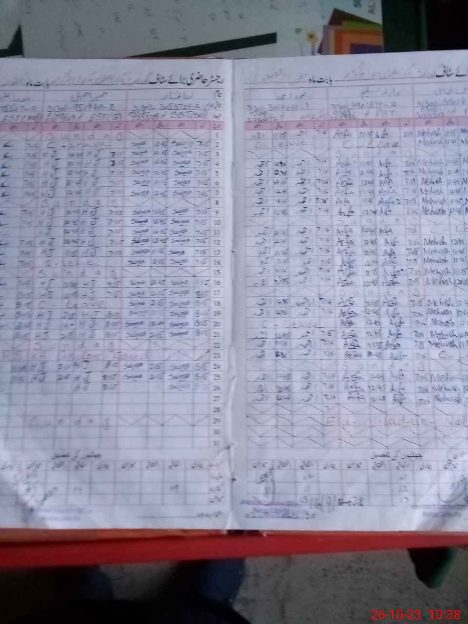 | CNIC | Full Name | Designation | R/C | Absence During Last Calender Month |