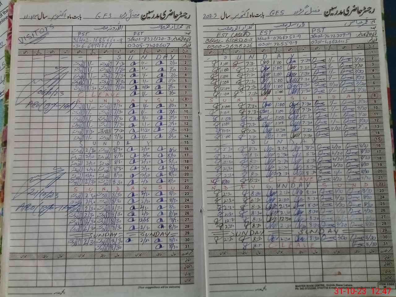 | CNIC | Full Name | Designation | R/C | Absence During Last Calender Month |