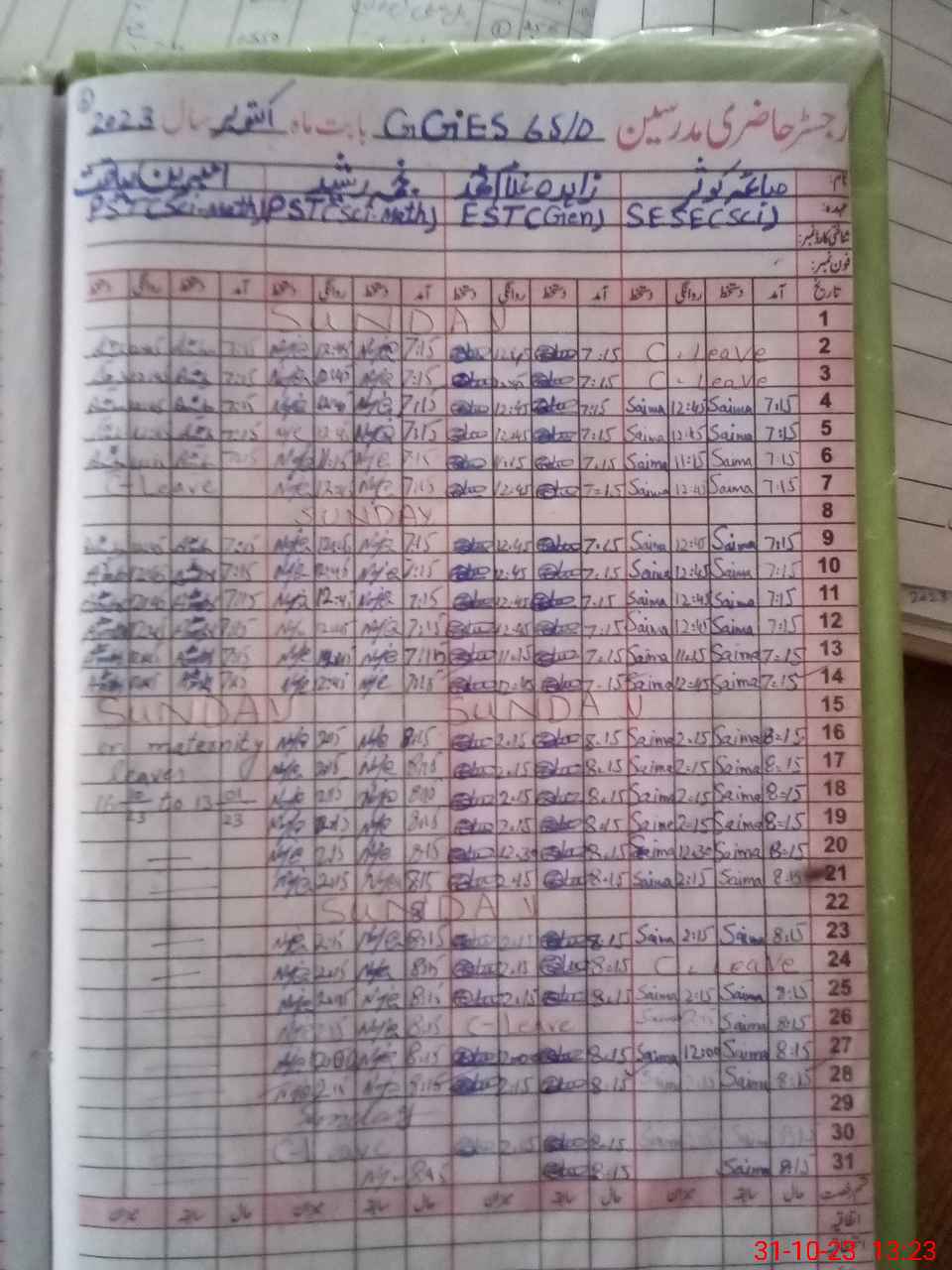 | Leave | Duty | Absent | Maternity | Medical | Ex- Pak |