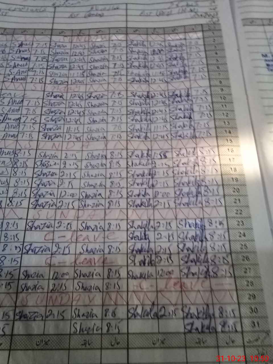 | 35**** | Sh**** Na**** | PST | Regular | 0 | 0 | 0 | 0 | 0 | 0 | 0 | 0 | 0 | Casual |