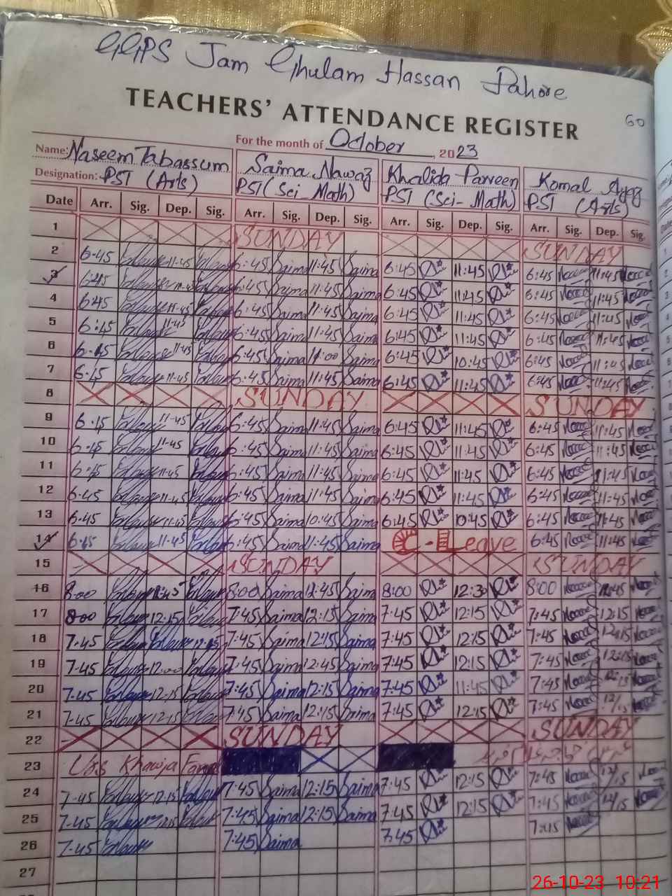 | Monitoring Date: 26-10-2023 | Start Time: 26-10-2023 09:57 AM | End Time: 26-10-2023 10:23 AM | Name of MEA: Ma**** UlHa**** | |