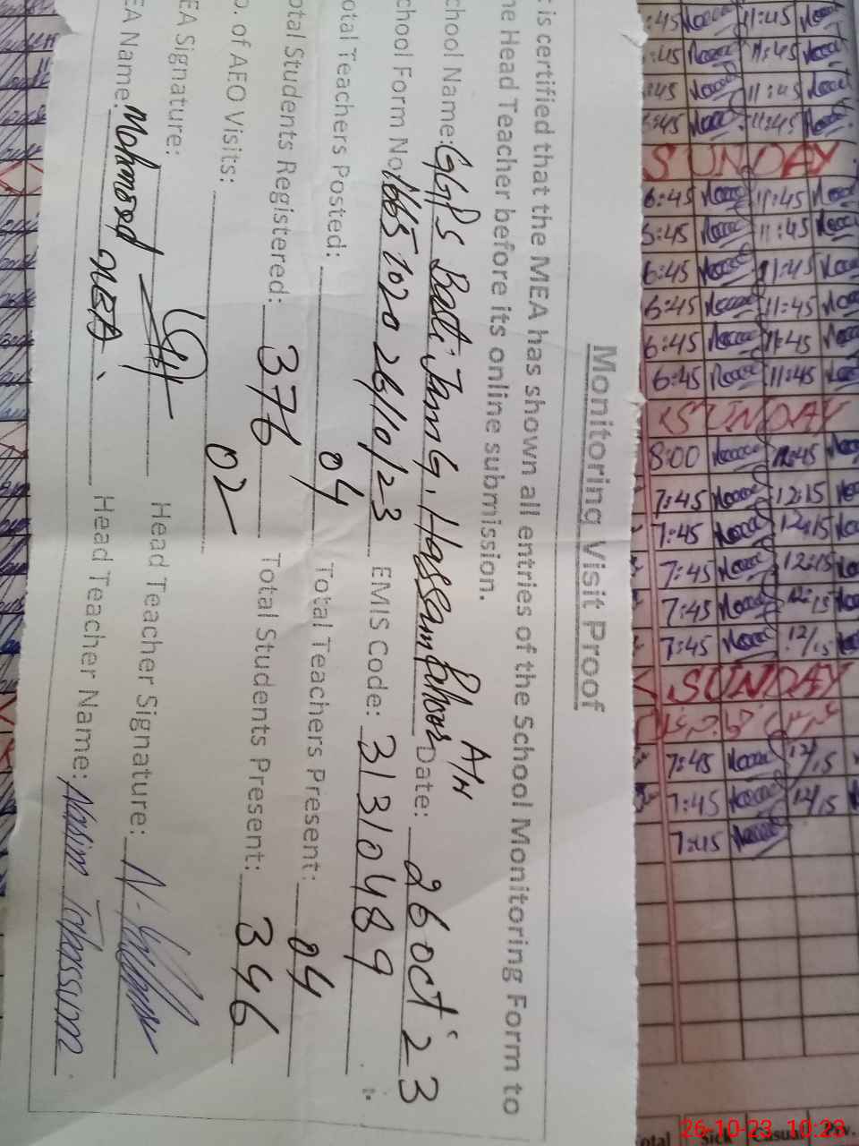| EMIS Code: 31310489 | Name of School: GGPS BASTI JAM GHULAM HASSAN PAHOR (After Noon) | |||