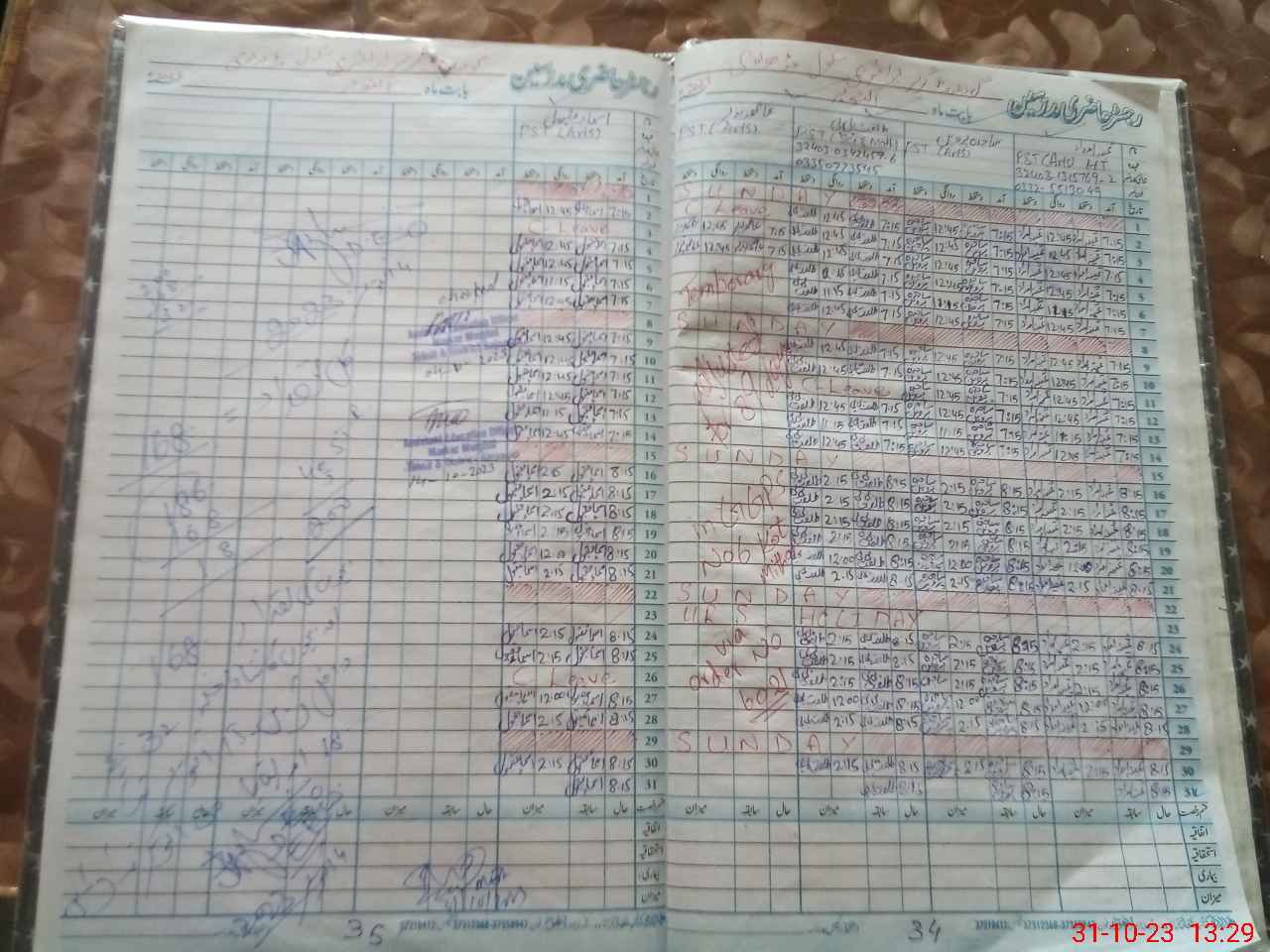 | CNIC | Full Name | Designation | R/C | Absence During Last Calender Month |