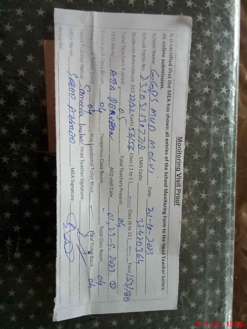 | EMIS Code: 32420364 | Name of School: GGES MUD MOULVI | |||
