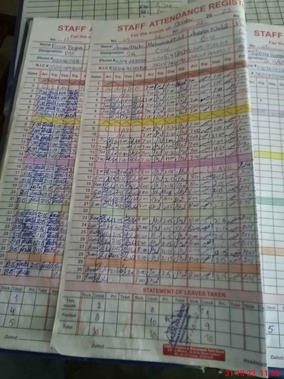 | CNIC | Full Name | Designation | R/C | Absence During Last Calender Month |