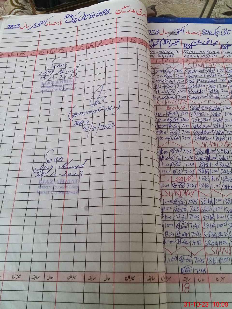 | Name: ZA**** YA**** Designation: (School Headmaster's/Headmistress's) PST SCI-MATH Phone/Cell Number: 03**** |