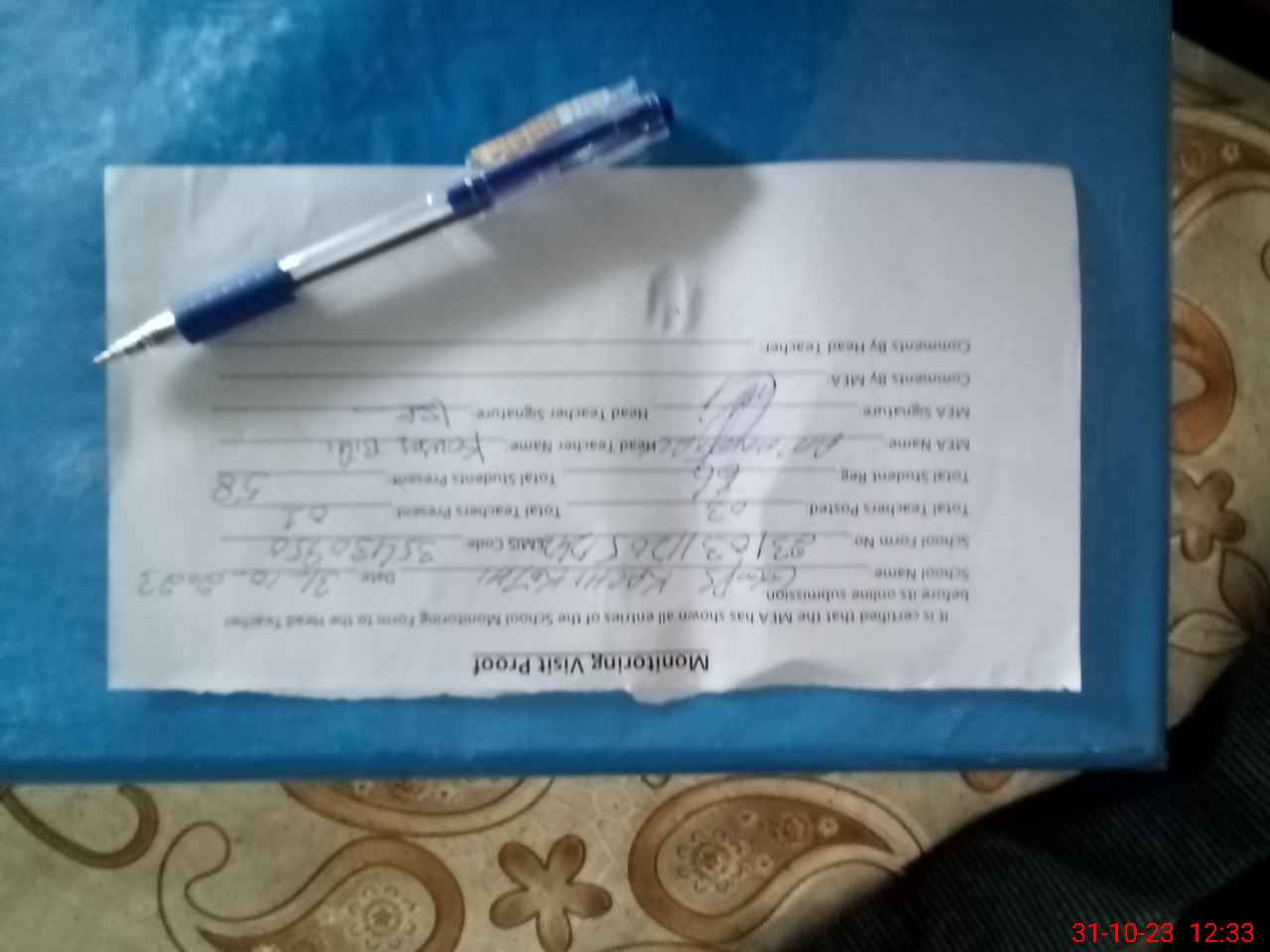 | Attendance Register | Head Teacher | MEA with School | Visit Proof |