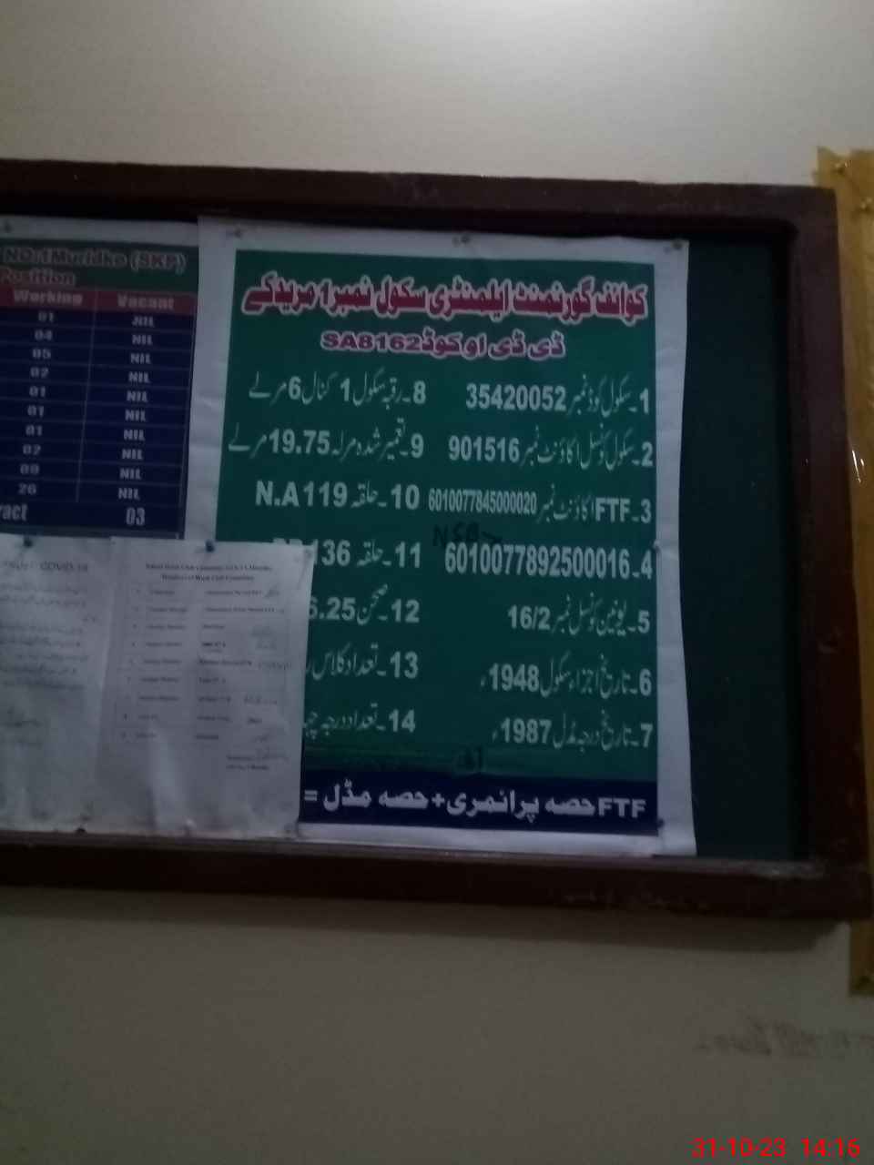 | District: SHEIKHUPURA | Tehsil: MURIDKE | Markaz: DHAROOR-MALE | Level: Middle | |