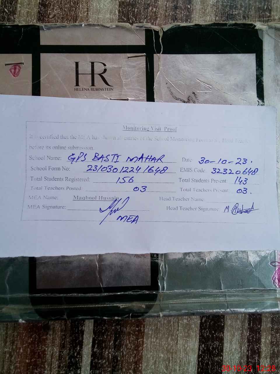 | EMIS Code: 32320648 | Name of School: GPS BASTI MAHAR | |||