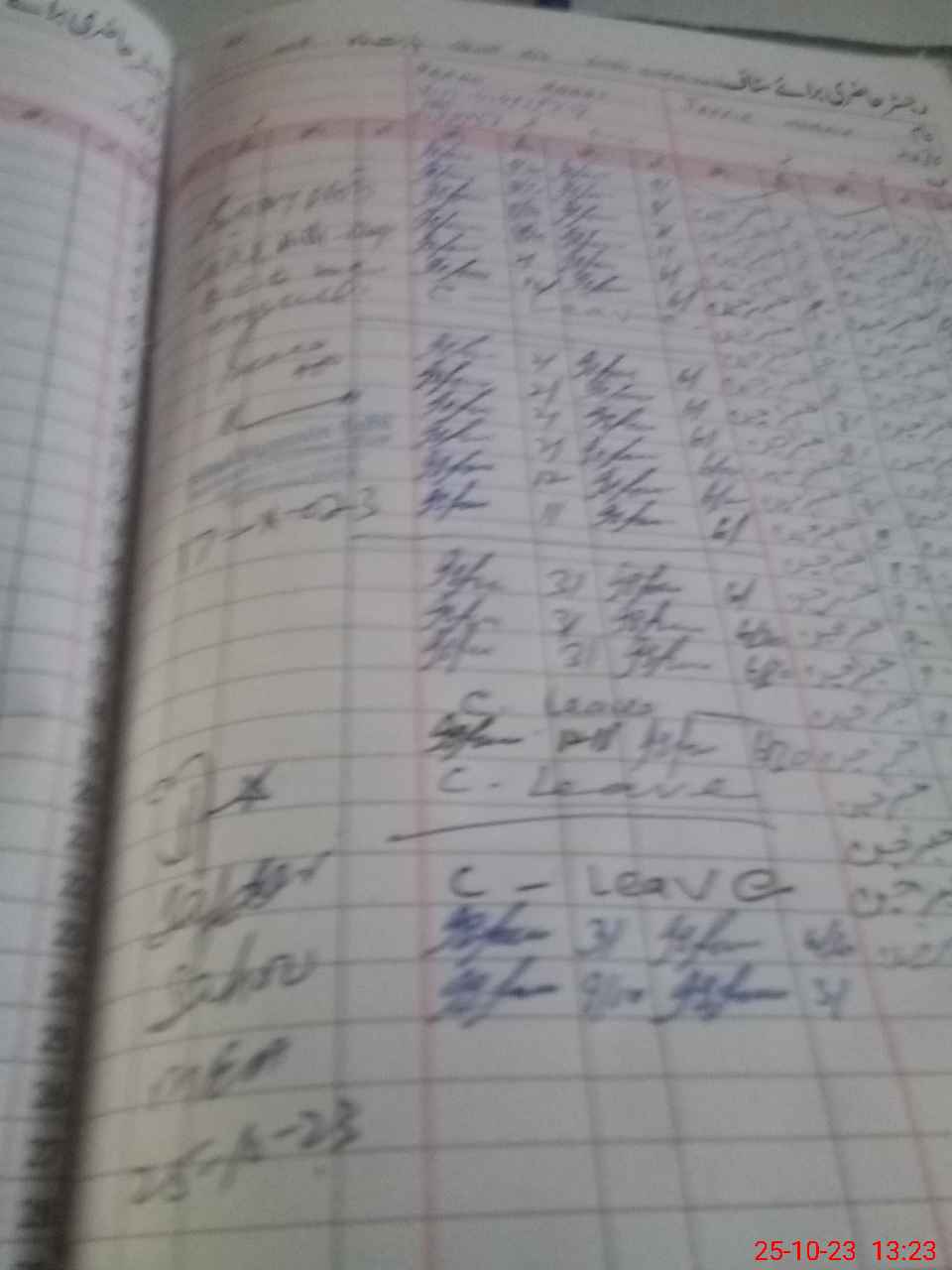 | 36**** | Mu**** Ah**** | 5 | 1 | 0 | 0 | 0 | 0 | 0 | 0 | 0 | 0 | 0 | Exam Duty |