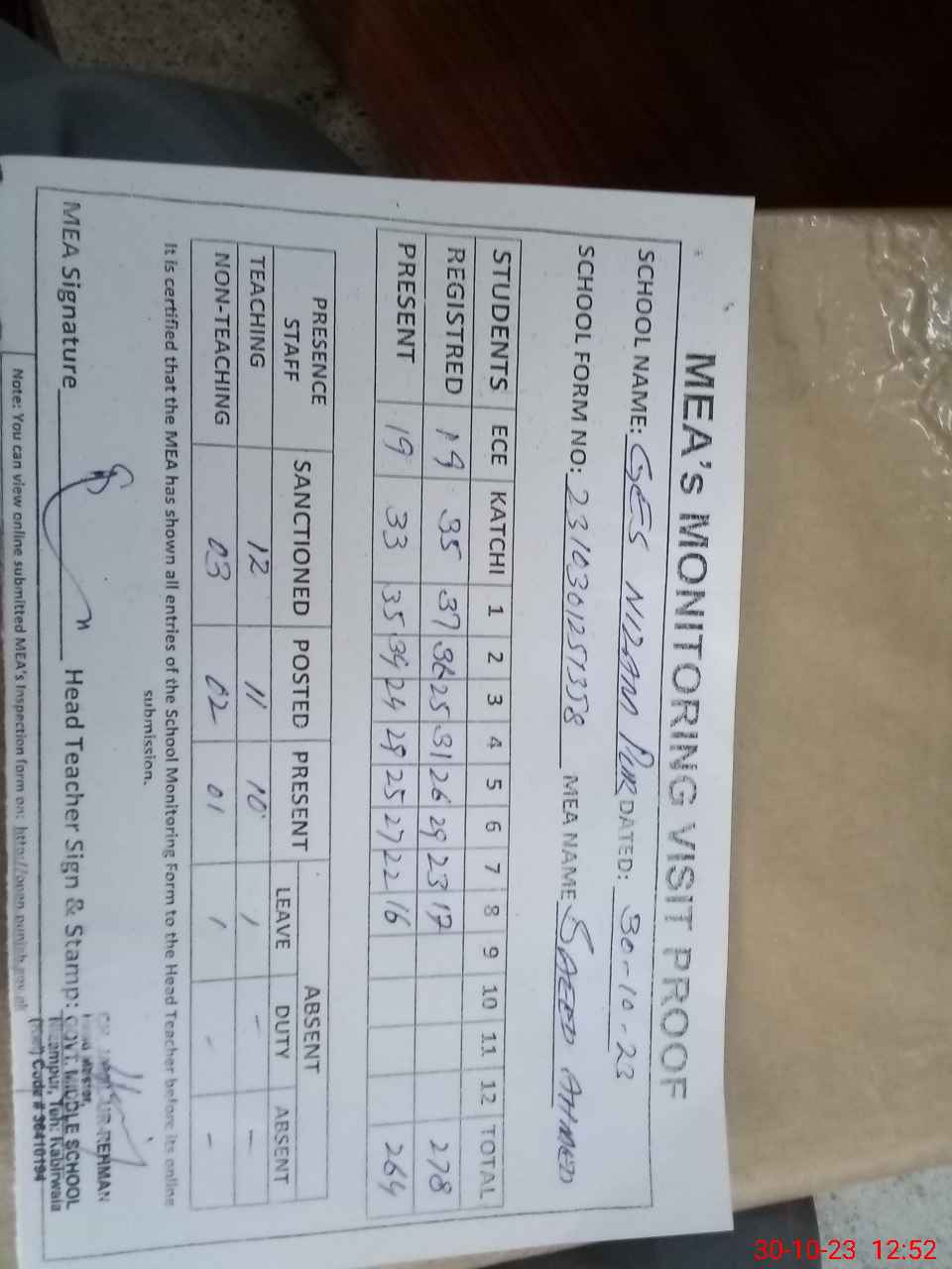 | EMIS Code: 36410194 | Name of School: GES NIZAM PUR, KABIRWALA | |||