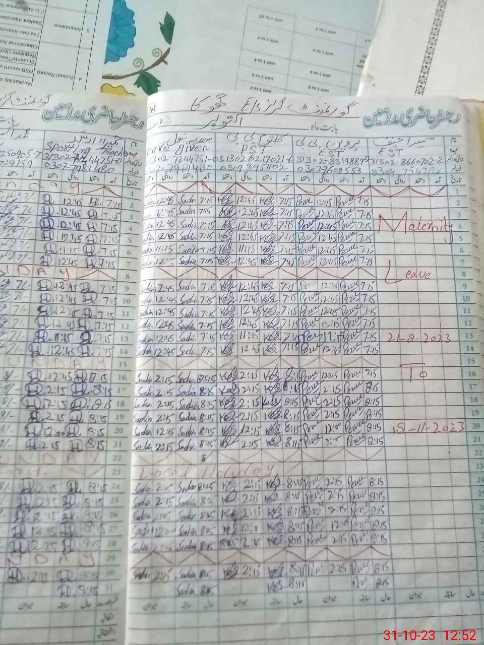 | 31**** | Su**** Ha**** | 3 | 1 | 0 | 0 | 0 | 0 | 0 | 0 | 0 | 0 | 0 | Maternity |