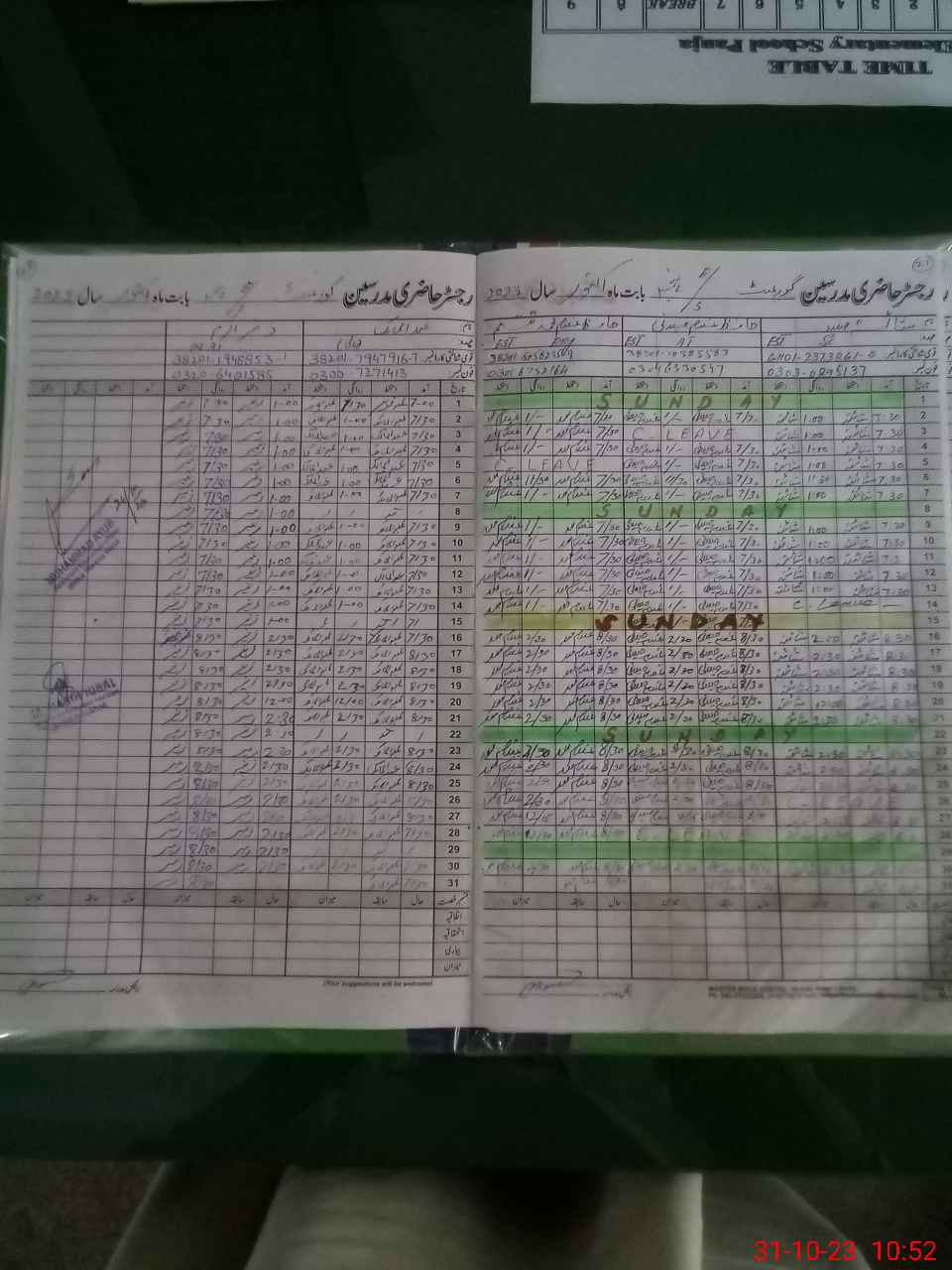 | Name: Sh**** Na**** Designation: (School Headmaster's/Headmistress's) SST Phone/Cell Number: 03**** |