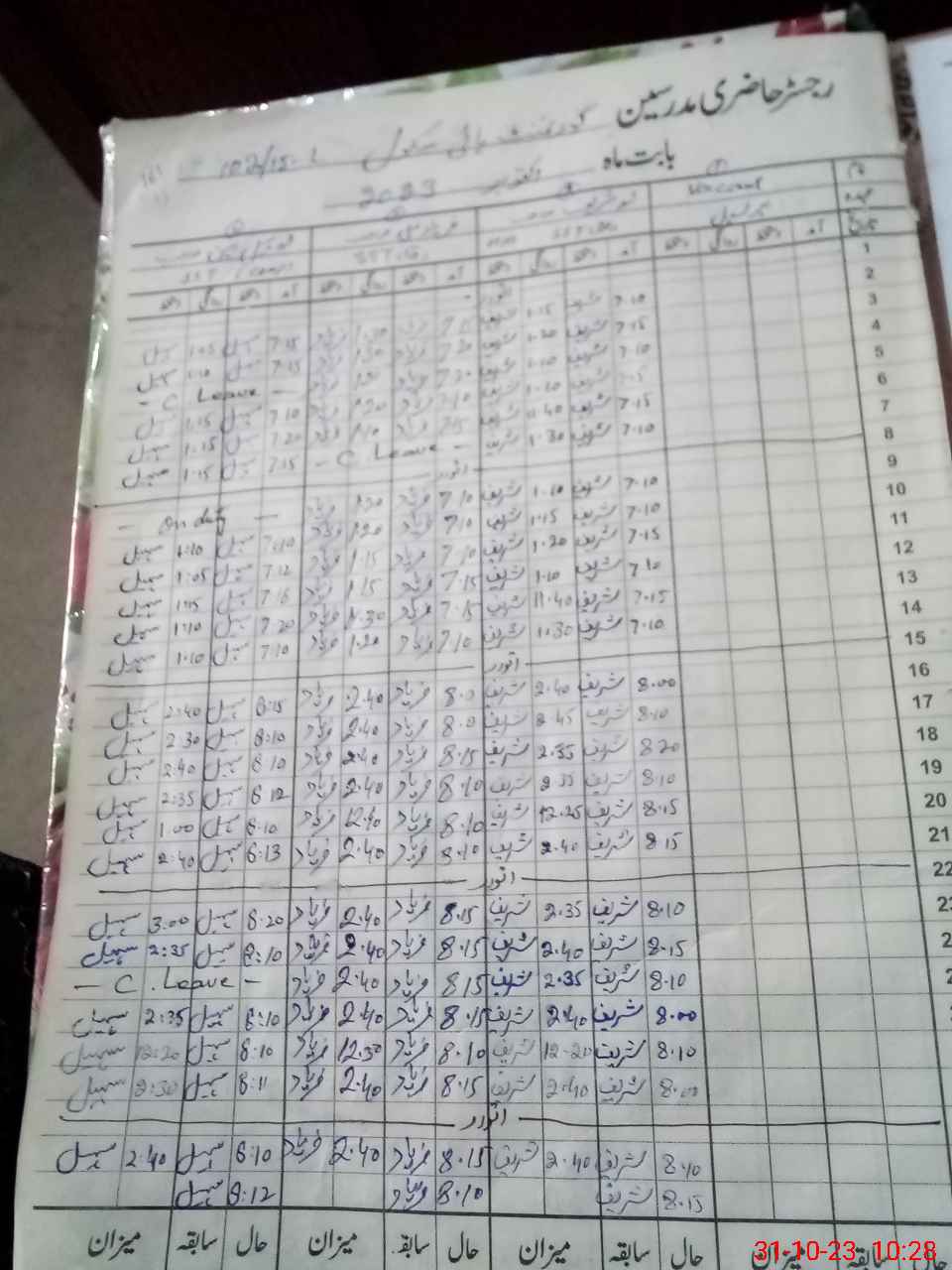 | CNIC | Full Name | Designation | R/C | Absence During Last Calender Month |