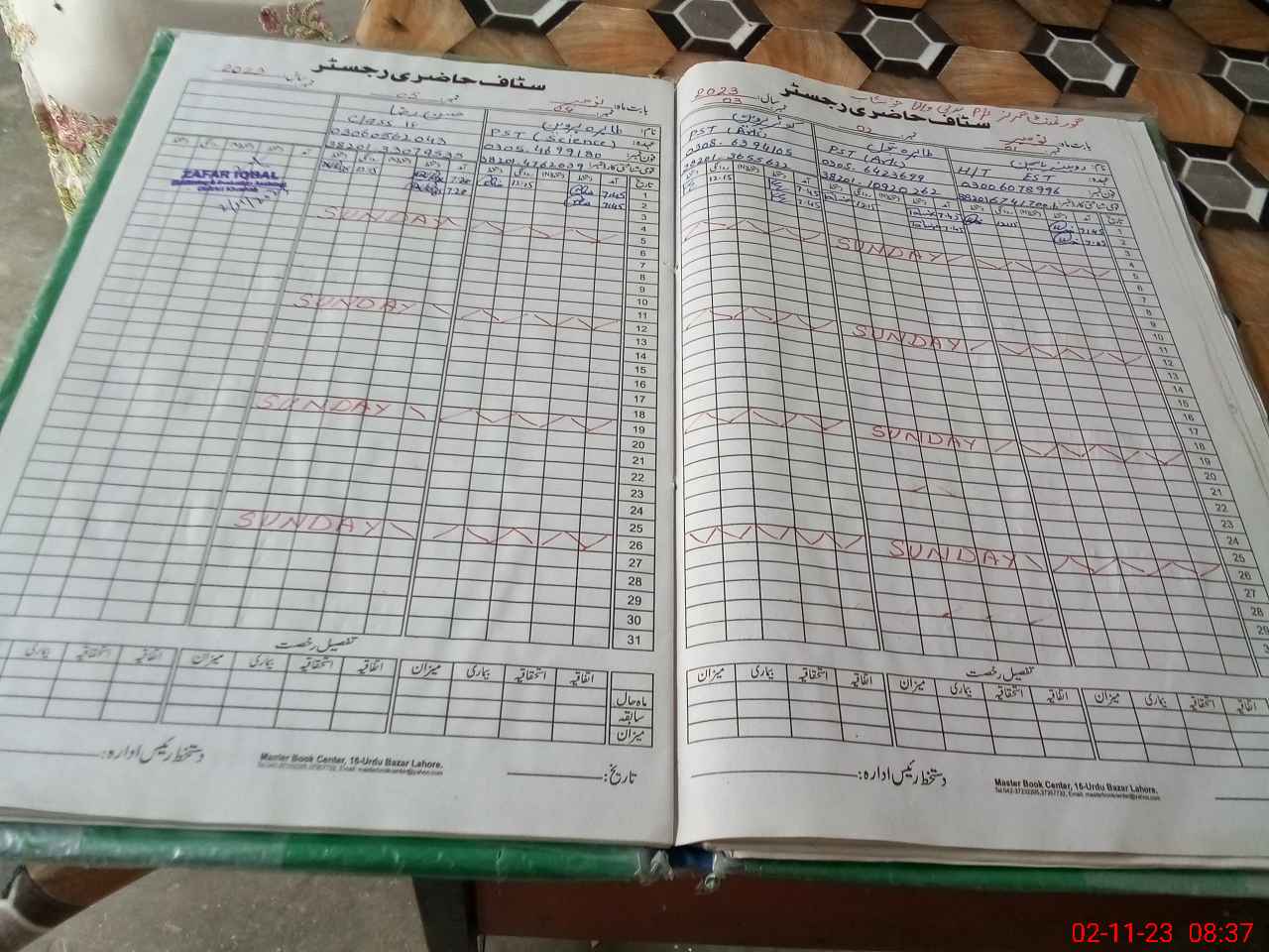 | CNIC | Full Name | Designation | R/C | Absence During Last Calender Month |