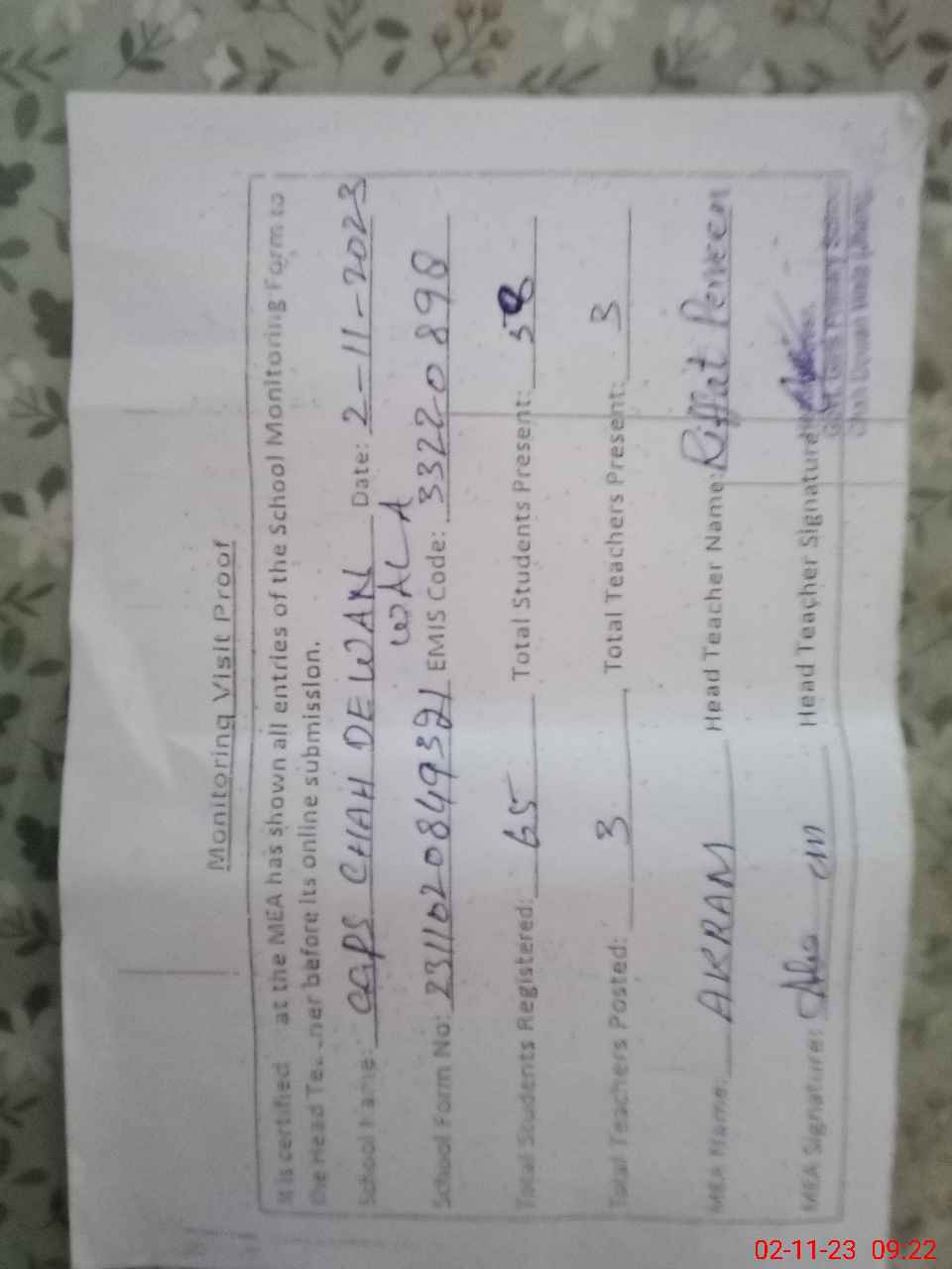 | EMIS Code: 33220898 | Name of School: GGPS CHAH DEWAN WALA | |||