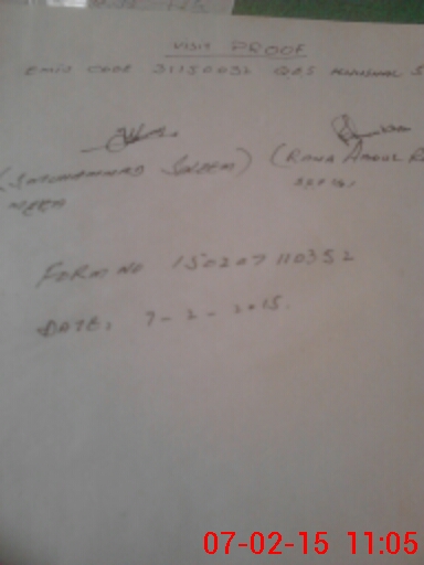 | Monitoring Date: 07-02-2015 | Start Time: 07-02-2015 10:31 AM | End Time: 07-02-2015 11:06 AM | Name of MEA: Mu**** Sa**** BN**** 33 | |