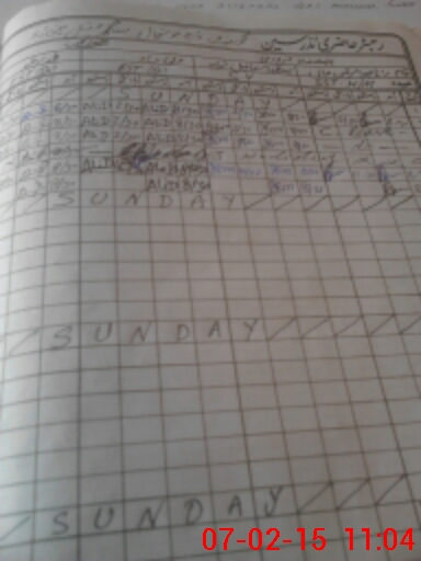 | CNIC | Full Name | Designation | R/C | Absence During Last Calender Month |