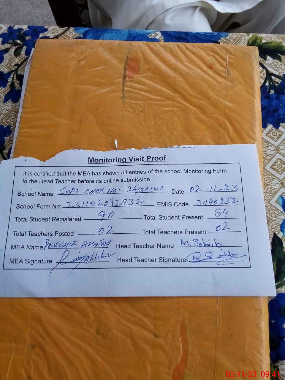 | EMIS Code: 31140252 | Name of School: GPS CHAK NO 26/3-R W | |||