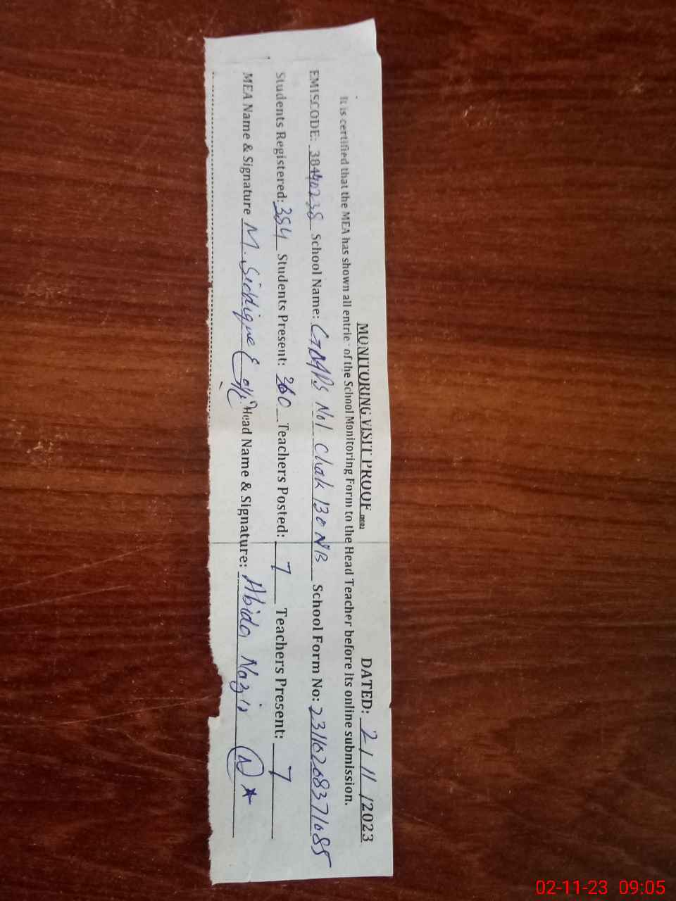 | EMIS Code: 38440238 | Name of School: GMPS NO.1 CHAK NO.130 NB | |||