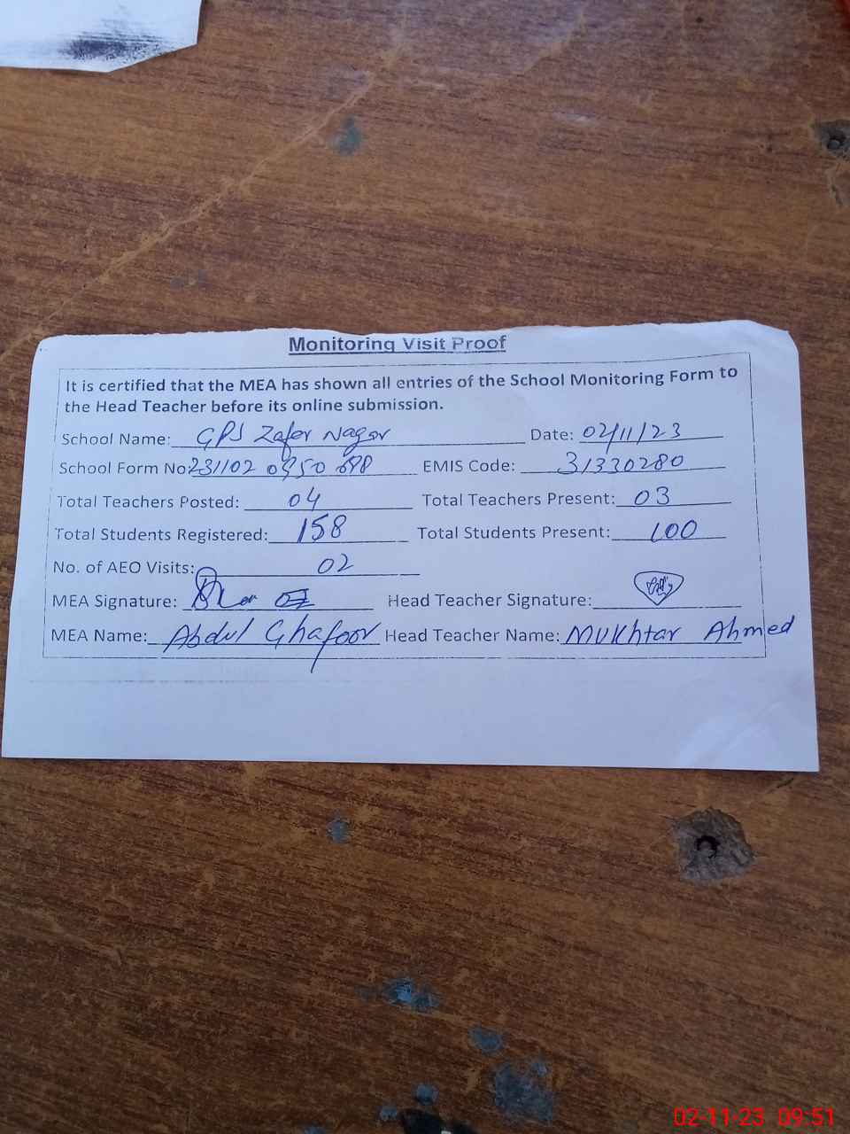 | EMIS Code: 31330280 | Name of School: GPS ZAFAR NAGAR MOUZA MAHMOOD GARH | |||
