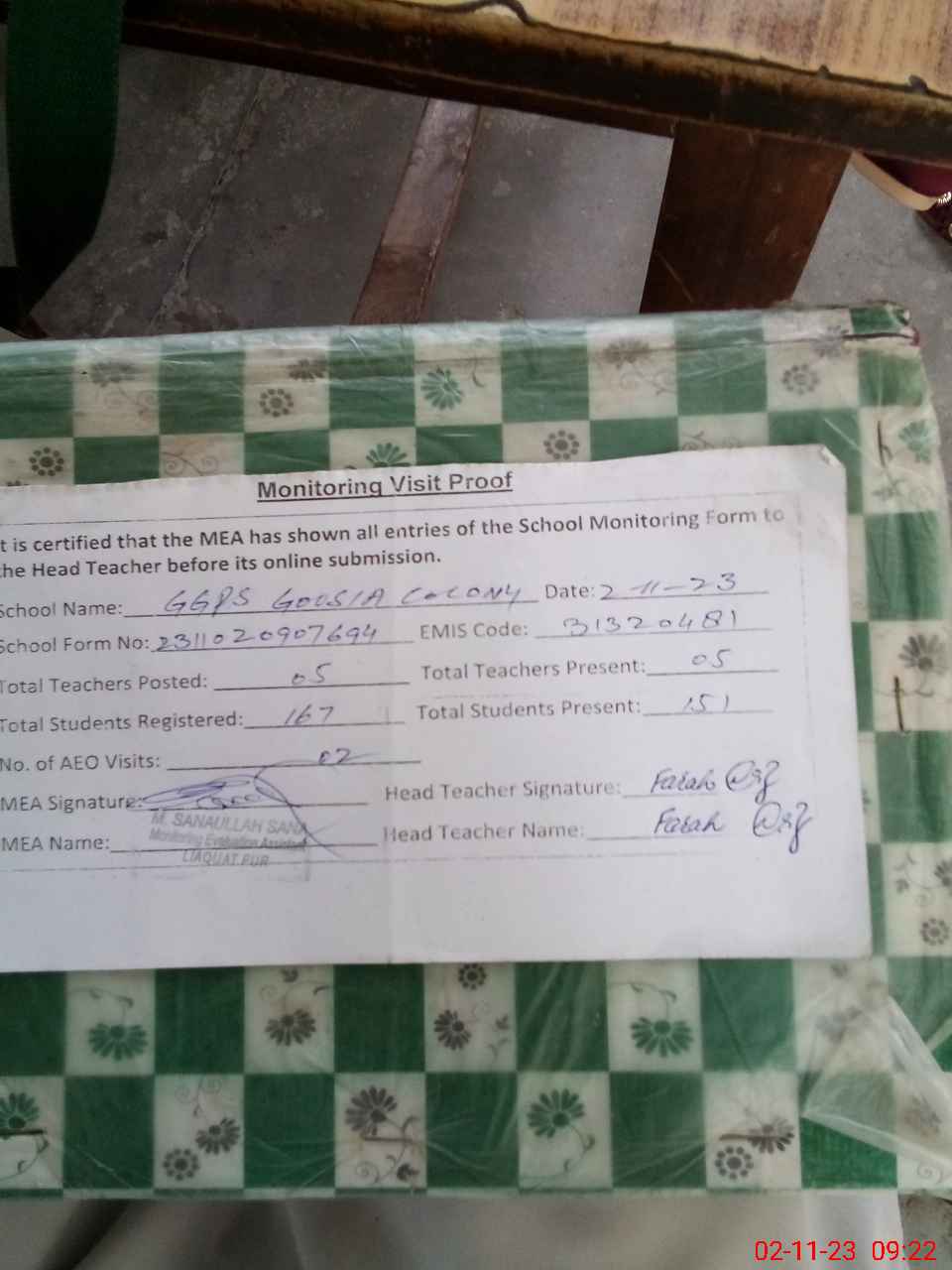 | EMIS Code: 31320481 | Name of School: GGPS GOUSIA COLONY | |||