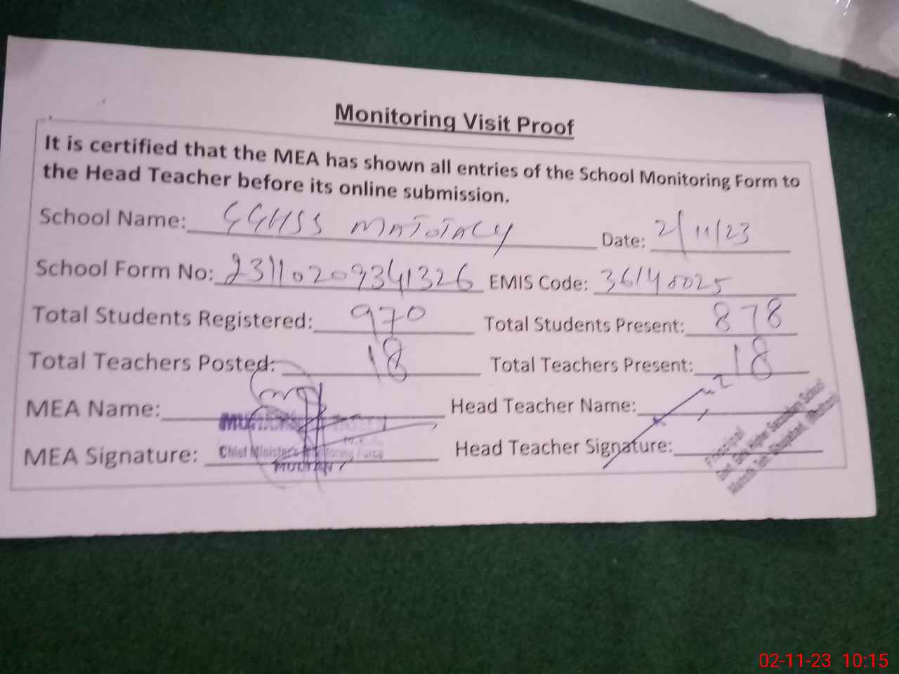 | Monitoring Date: 02-11-2023 | Start Time: 02-11-2023 09:34 AM | End Time: 02-11-2023 10:15 AM | Name of MEA: MU**** YA**** | |