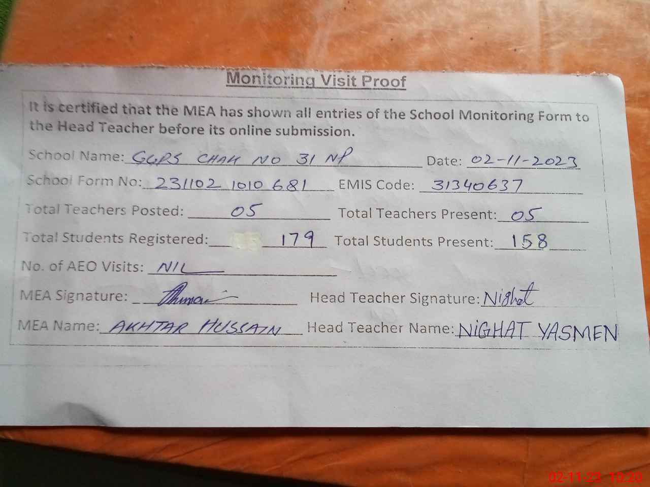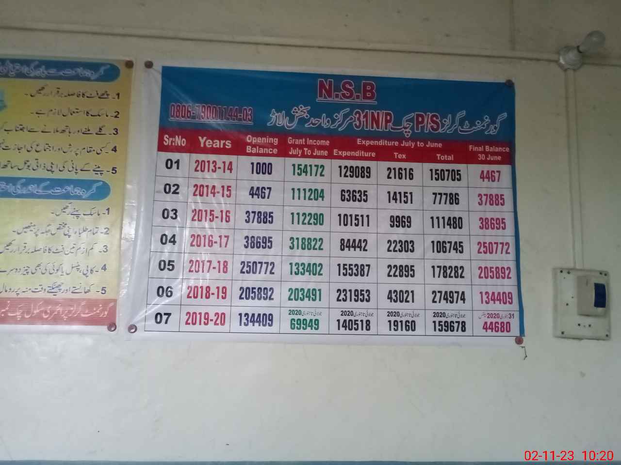 | EMIS Code: 31340637 | Name of School: GGPS CHAK NO.31/NP | |||