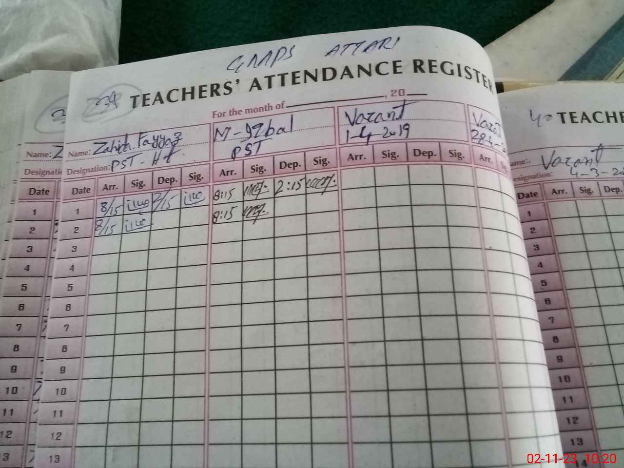 | Name: ZA**** FA**** Designation: (School Headmaster's/Headmistress's) PST Phone/Cell Number: 03**** |