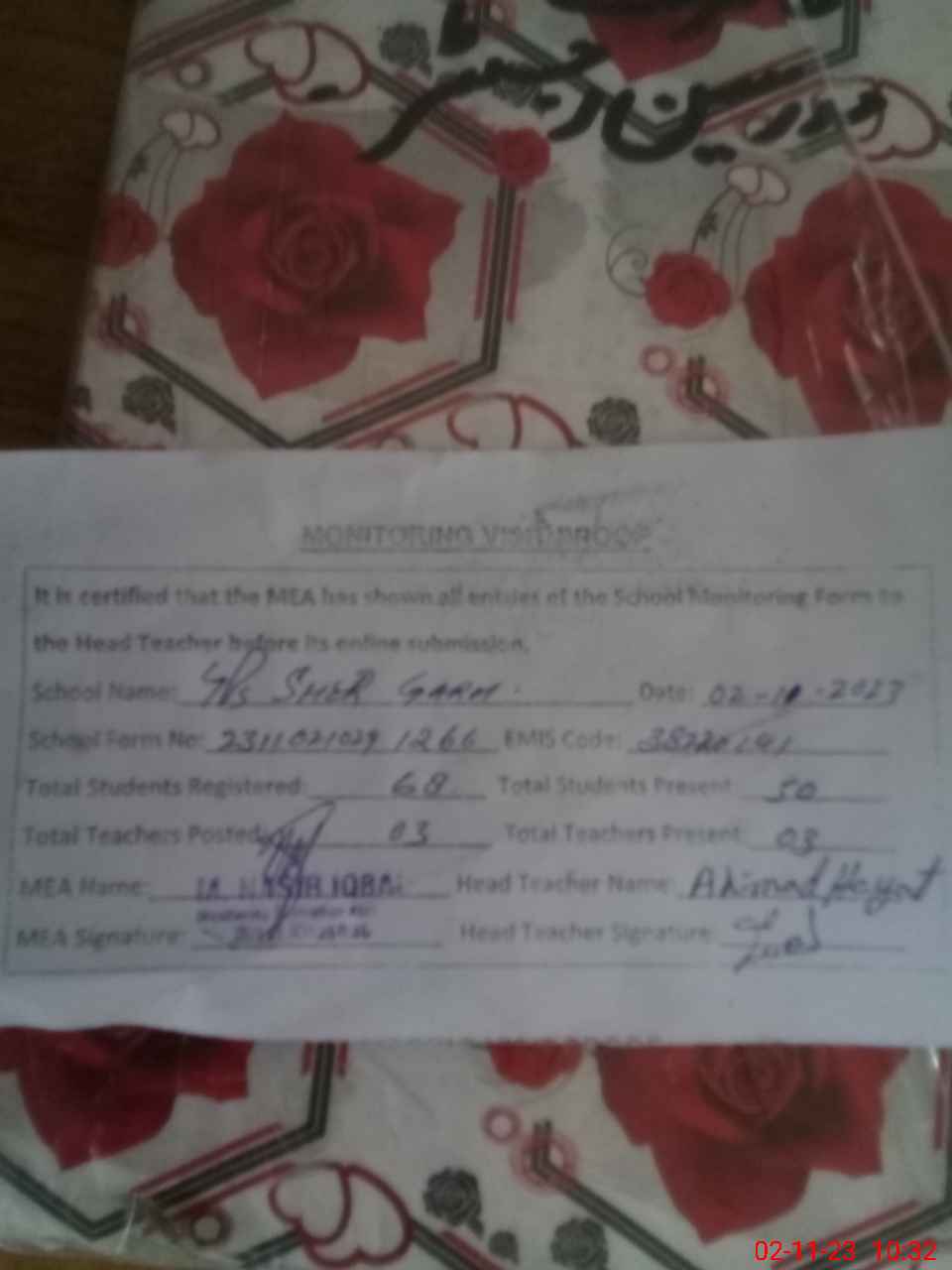 | EMIS Code: 38220141 | Name of School: GPS SHER GARH | |||