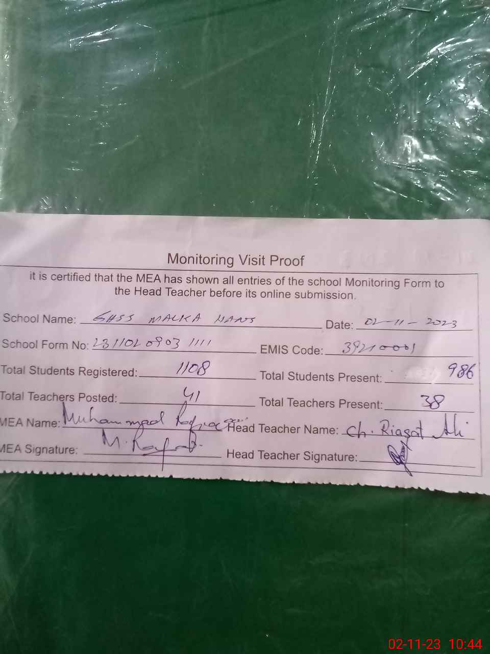 | Certified that this School was Inspected by the Undersigned MEA/DMO Today and the Information Stated Above is as Per Record. | |||||